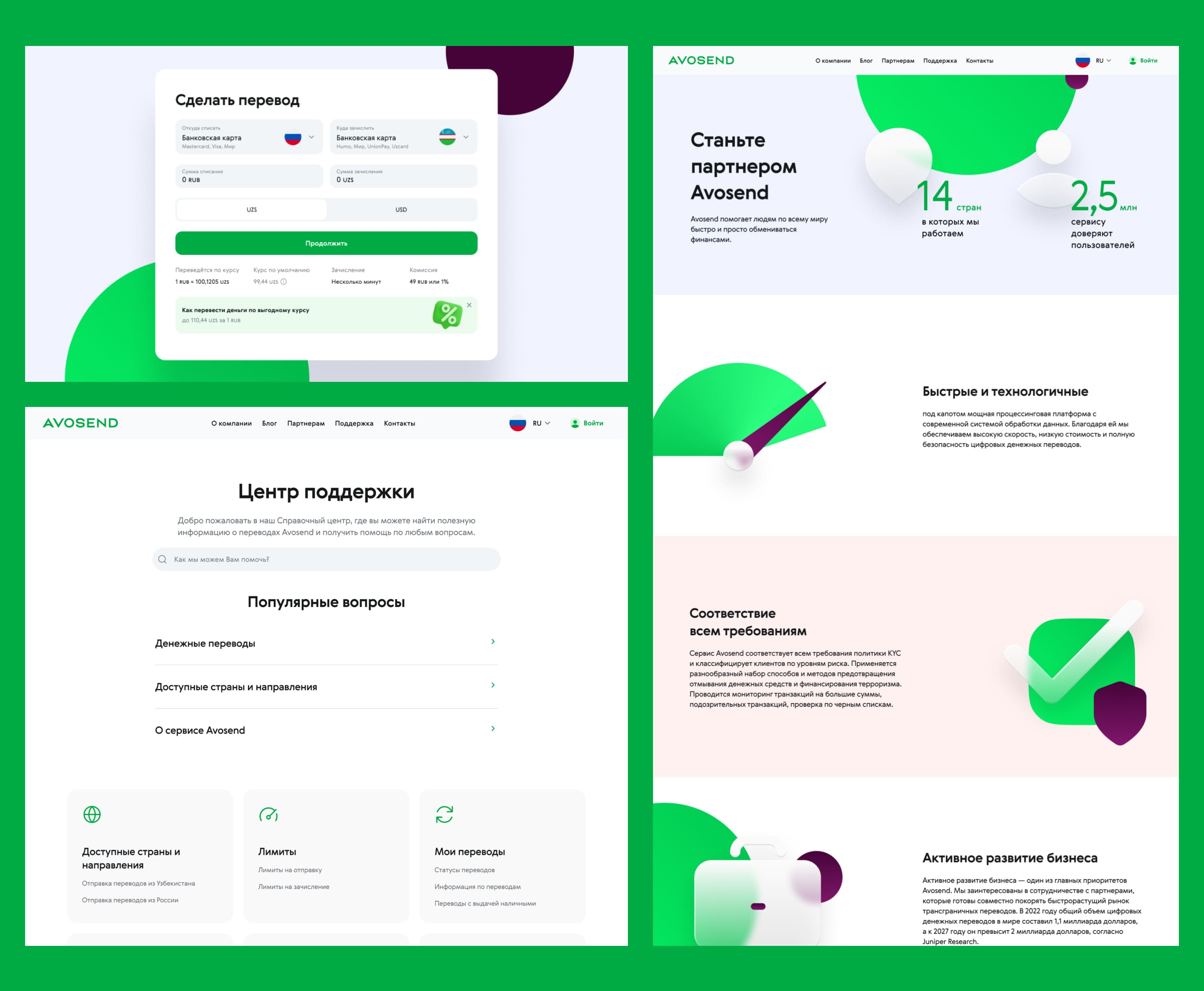 Для Avosend мы разработали новый сайт на CMS 1С-Битрикс, выстроили архитектуру и настроили интеграции с внутренними системами сервиса.
