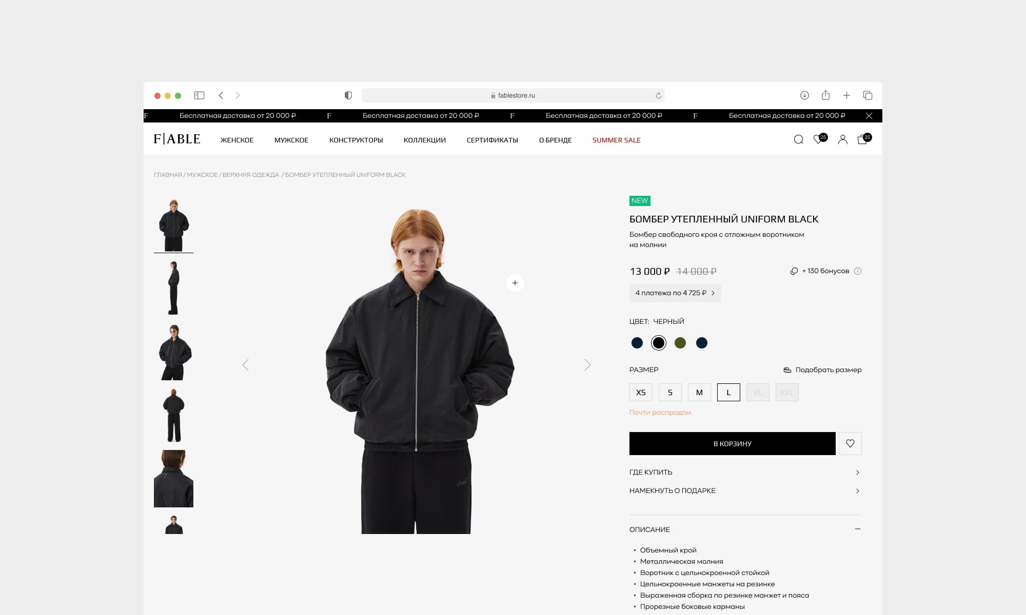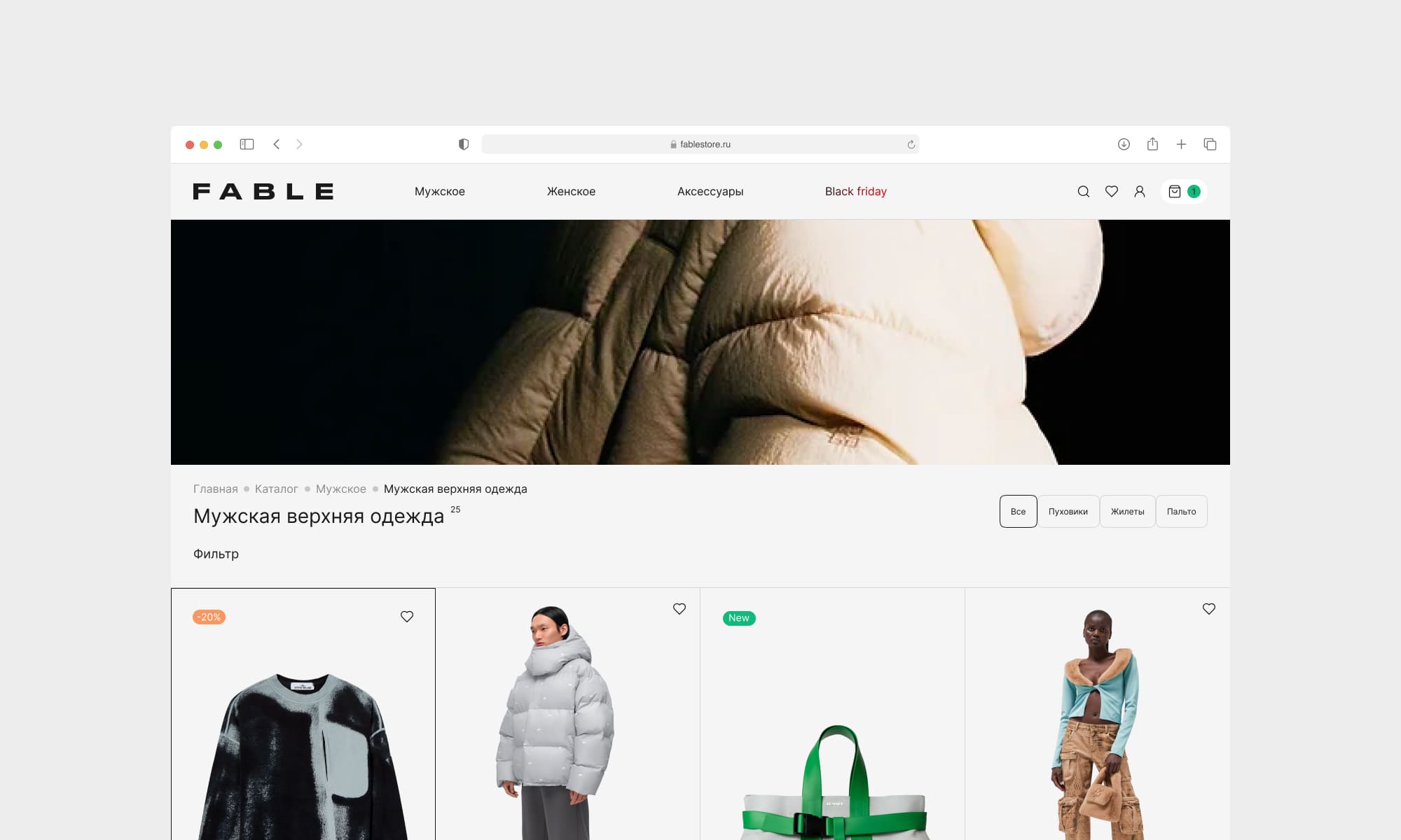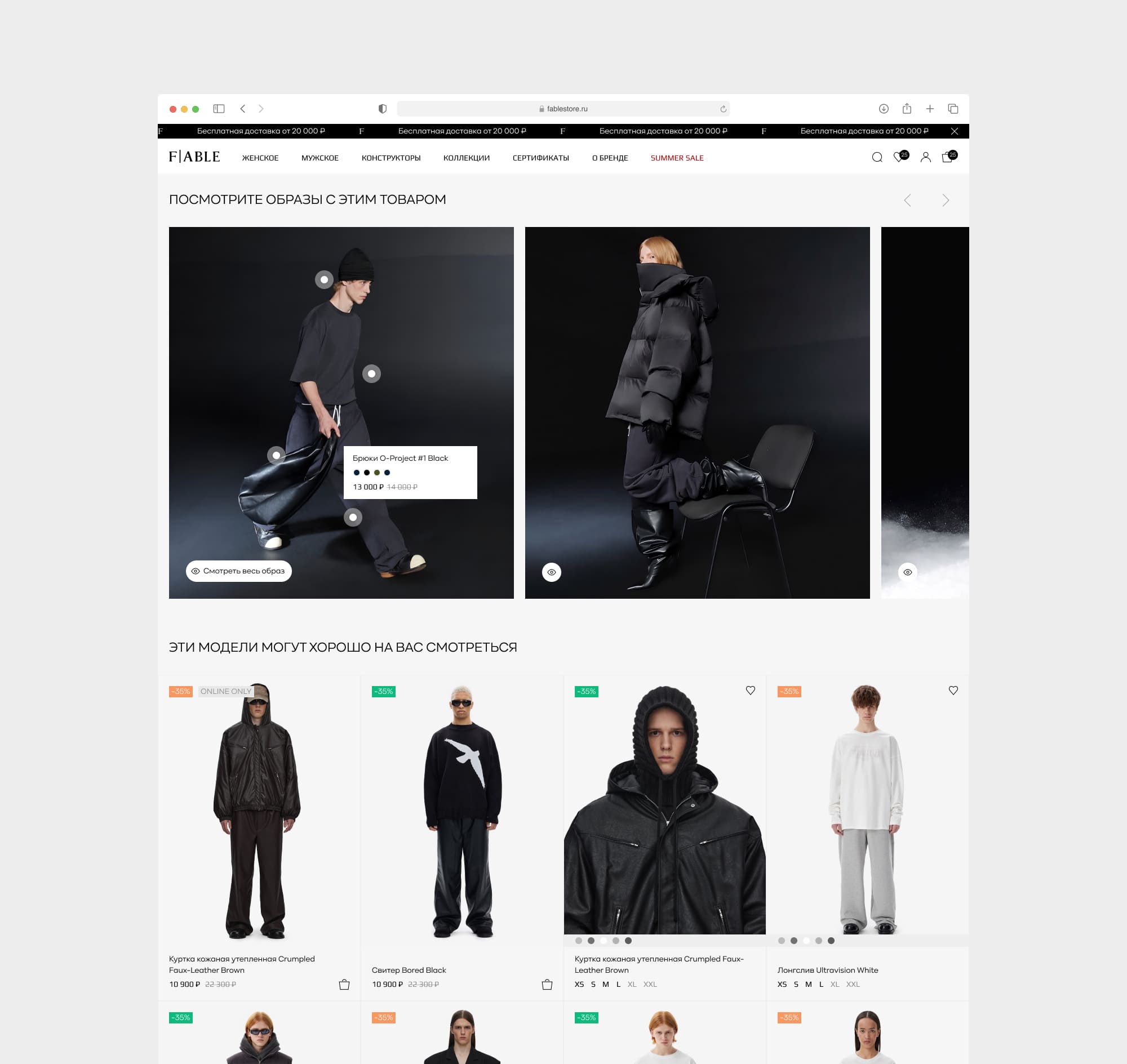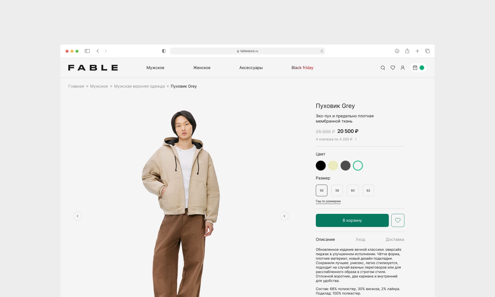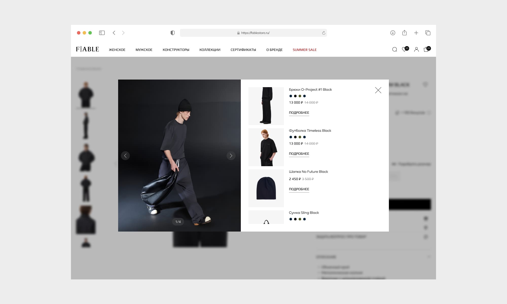 Для бренда FABLE мы разработали интернет-магазин на 1С-Битрикс, выстроили архитектуру и настроили интеграции.