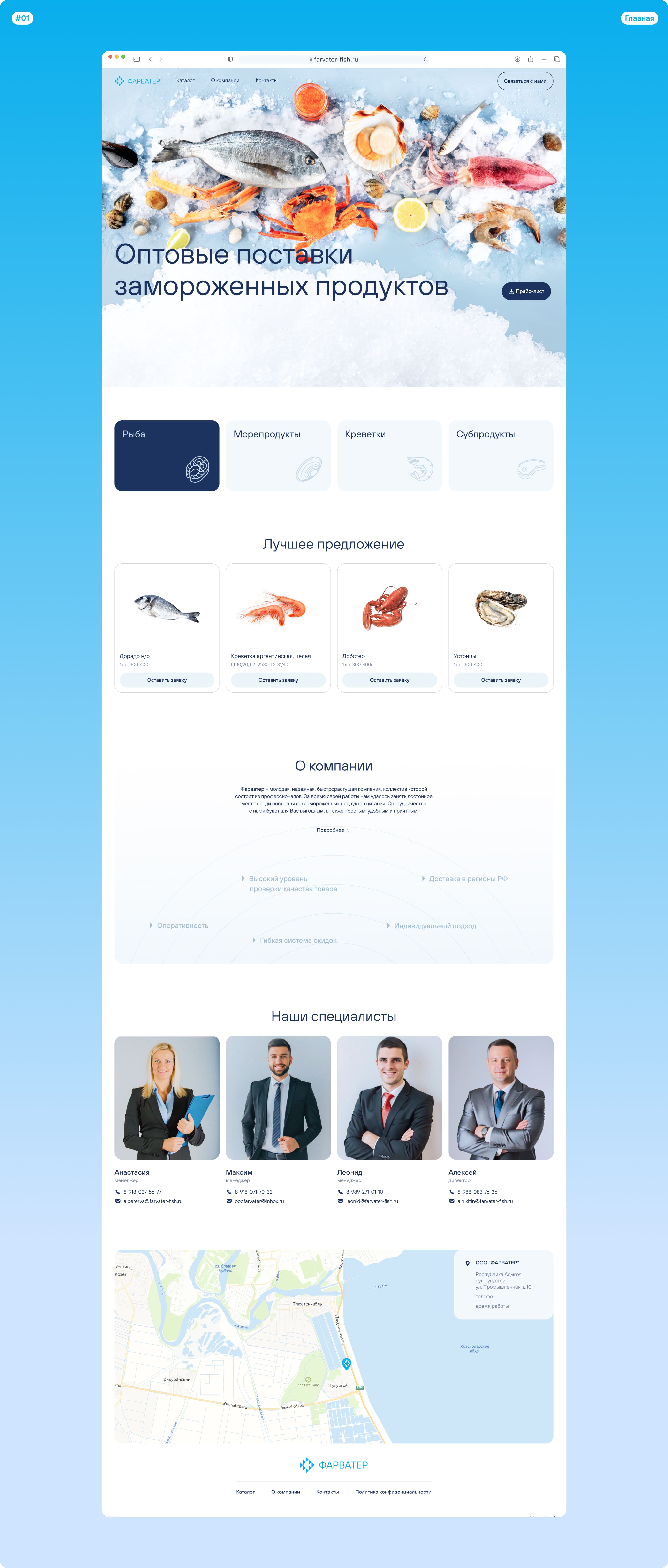 Молодая, надежная, быстрорастущая компания. Коллектив состоит из профессионалов своего дела, благодаря чему им удалось занять достойное место среди поставщиков замороженных продуктов питания.