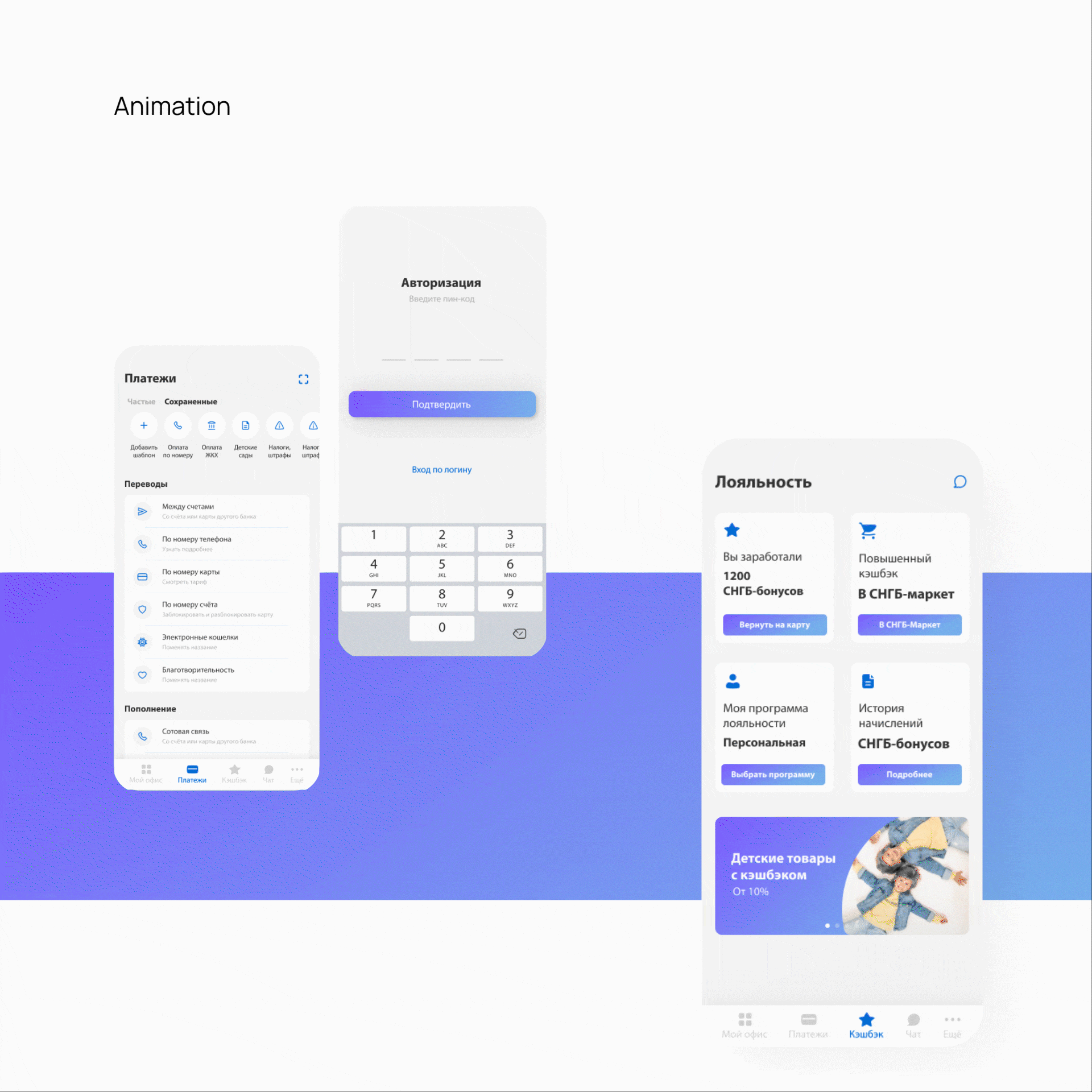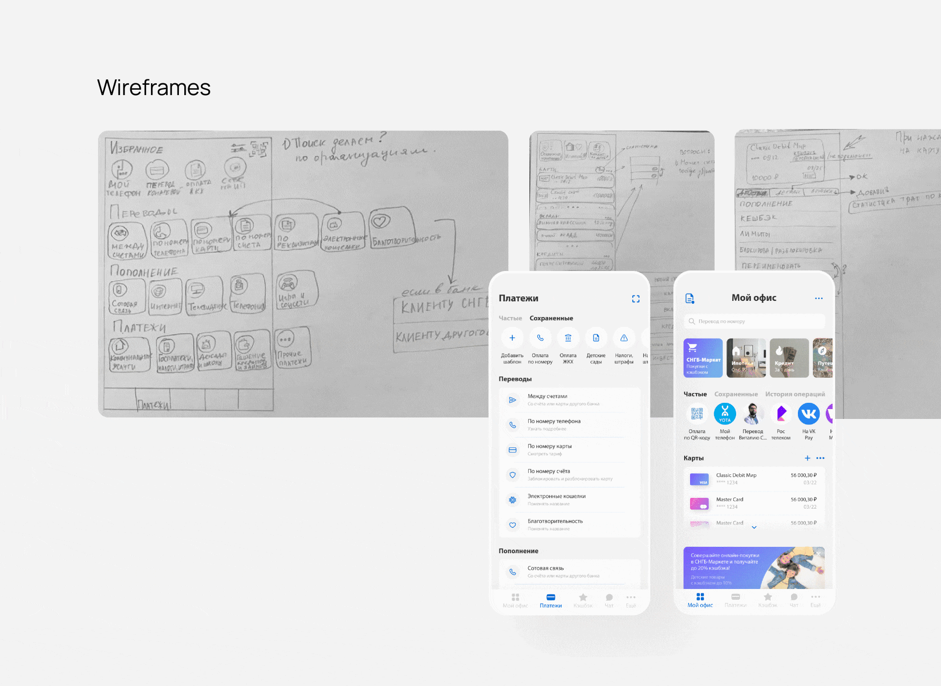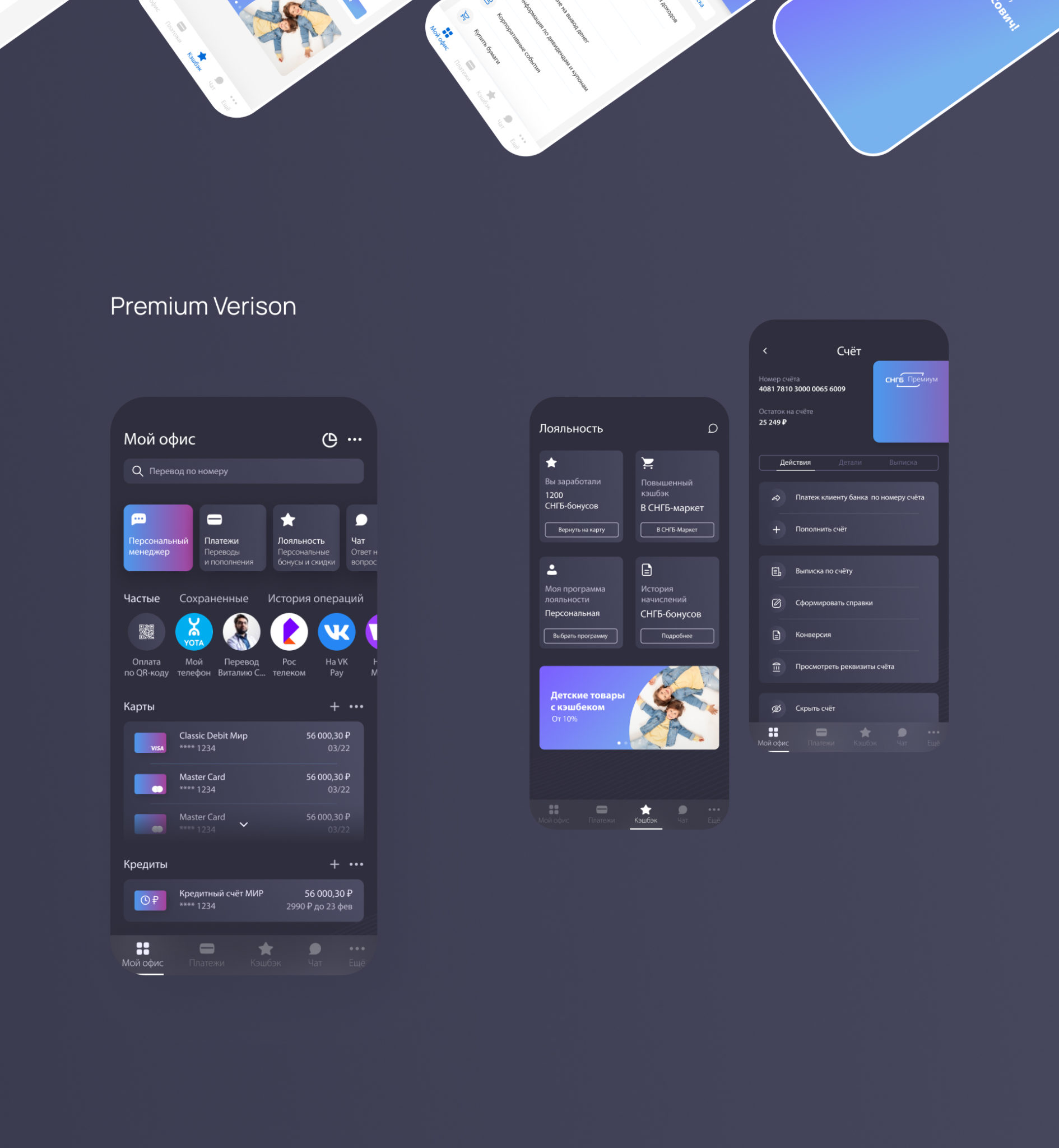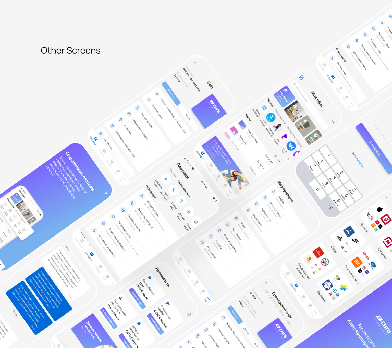 Разработать современный и удобный дизайн мобильного приложения СНГБ в тёмной и светлой темах – с опорой на пользовательские сценарии и особенности финансовых сервисов.