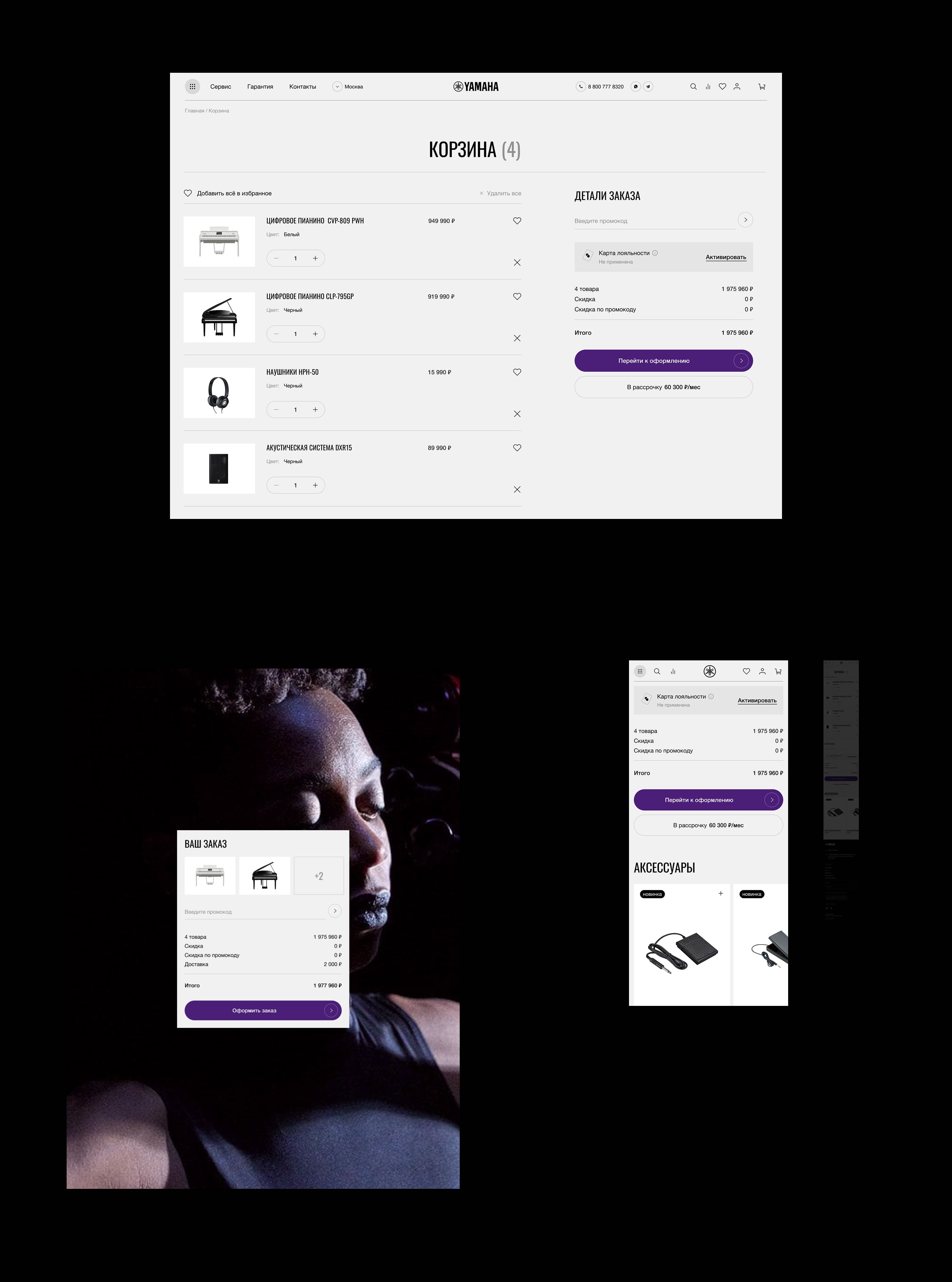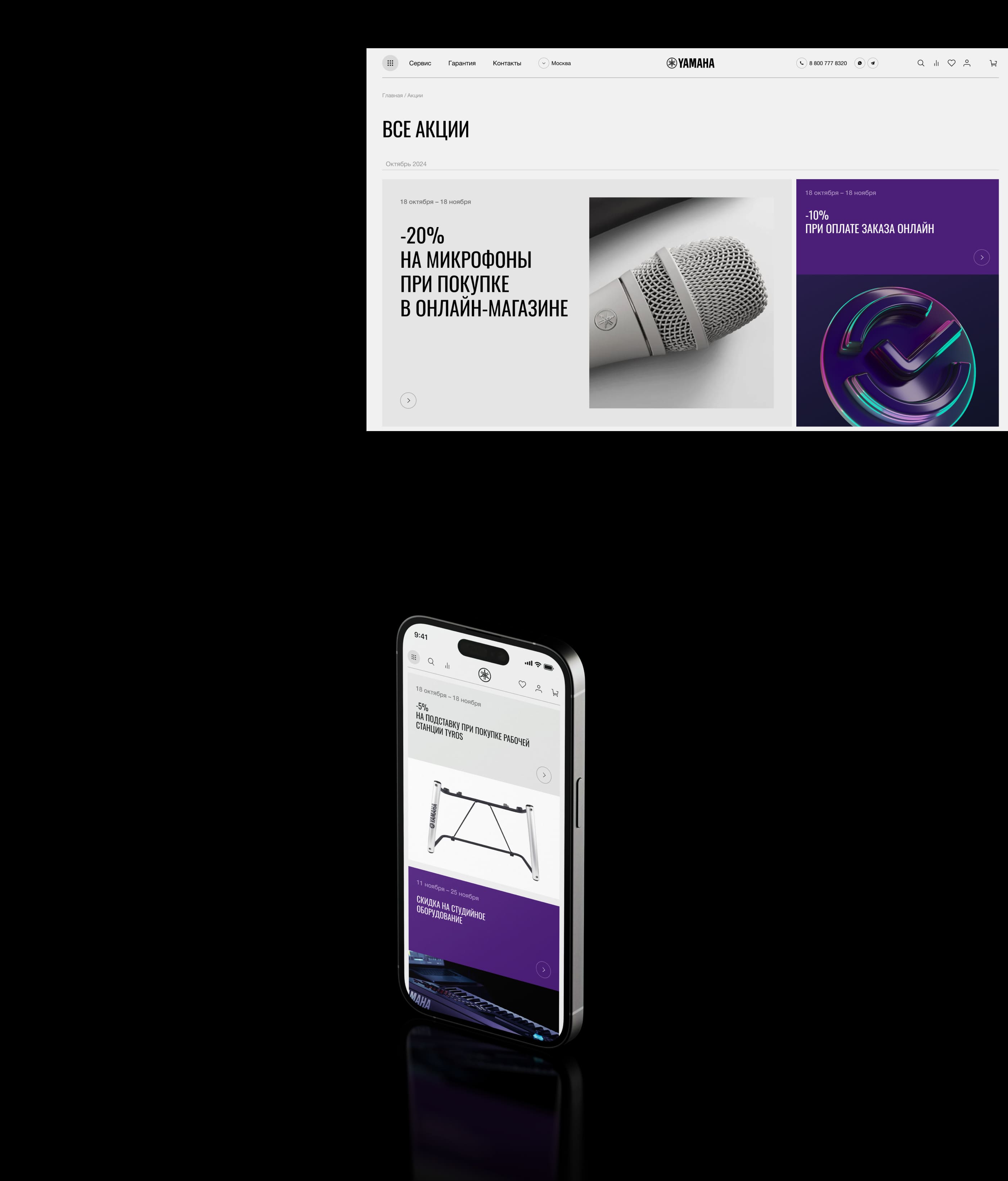 Разработать интернет-магазин для бренда Yamaha, который отражает историю компании и обеспечивает удобный процесс покупки музыкальных инструментов для широкой аудитории — от новичков до профессионалов.