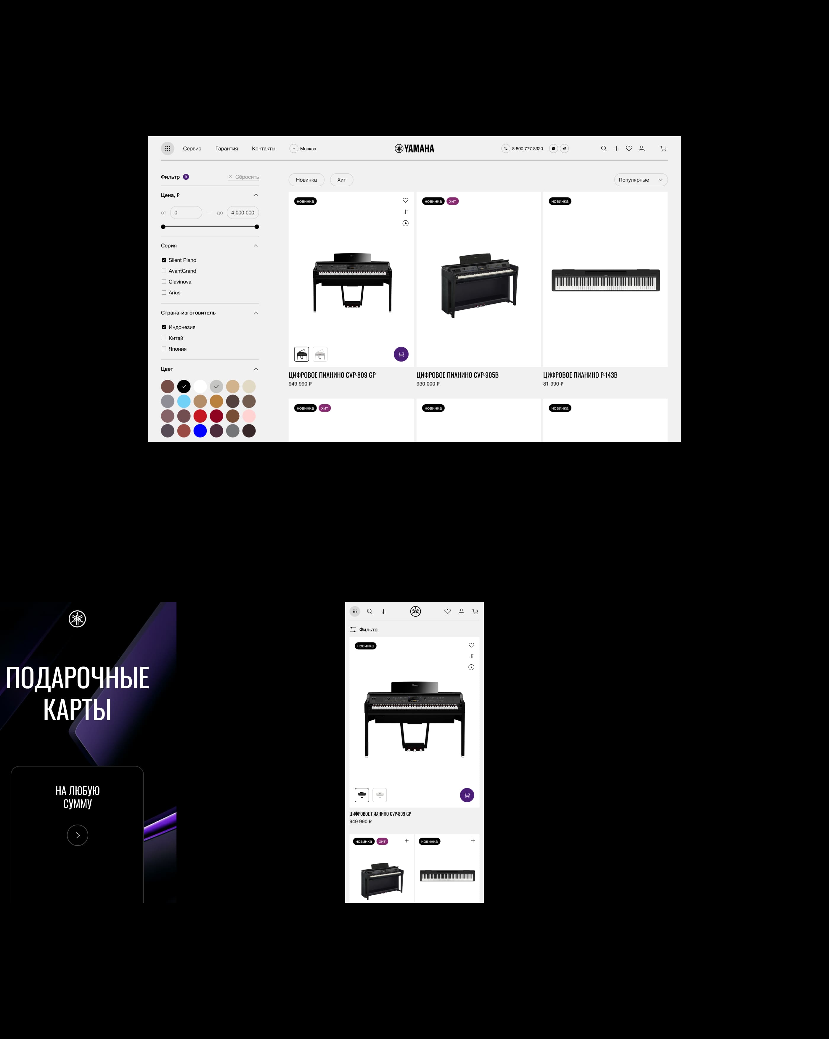 Разработать интернет-магазин для бренда Yamaha, который отражает историю компании и обеспечивает удобный процесс покупки музыкальных инструментов для широкой аудитории — от новичков до профессионалов.